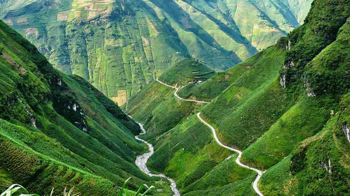 Durant cet itinéraire moto, vous ne pouvez pas ignorer le col de ma Pi Leng. Ce col attire les voyageurs par la beauté de la terre, le ciel et le paysage avec des rivières, des montagnes…qui se mélangent ensemble d’une manière majestueuse. Debout au sommet, vous verrez la rivière Nho Que verte toute l'année se serpentant comme un fil délicat entre les montagnes escarpées vives en forme d’oreilles de chat en créant une scène rare où les nuages, le ciel, la rivière, les montagnes se croisent magiquement.