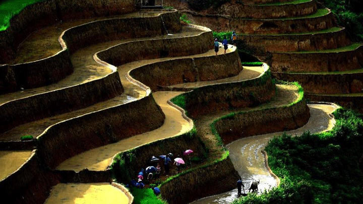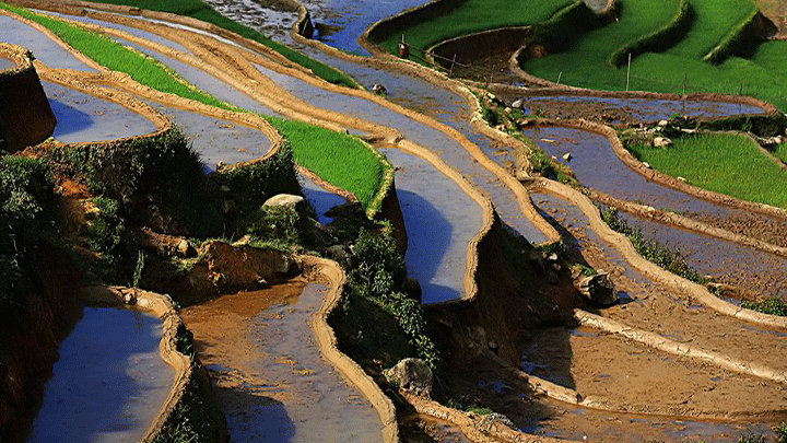 Mu Cang Chai: Cette reculée région a les champs en terrasses s’étendant à travers les flancs de la montagne. Les rizières se suivant, les unes les autres, semblent être interminables. Parmi environ 2.200 hectares de terrasses, il y a 500 hectares à trois communes: La Pan Tan, Che Cu Nha et De Xu Phinh reconnues comme l'un des paysages uniques, le Patrimoine National du Vietnam en 200...Vous allez conquérir le col Khau Pha – Un défit agréable du trip au nord du Vietnam en moto avec les vues uniques.